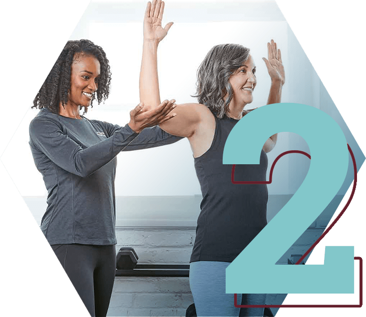 You'll meet your trainer in a private studio or virtually for a 1:1 session to begin your workout program.