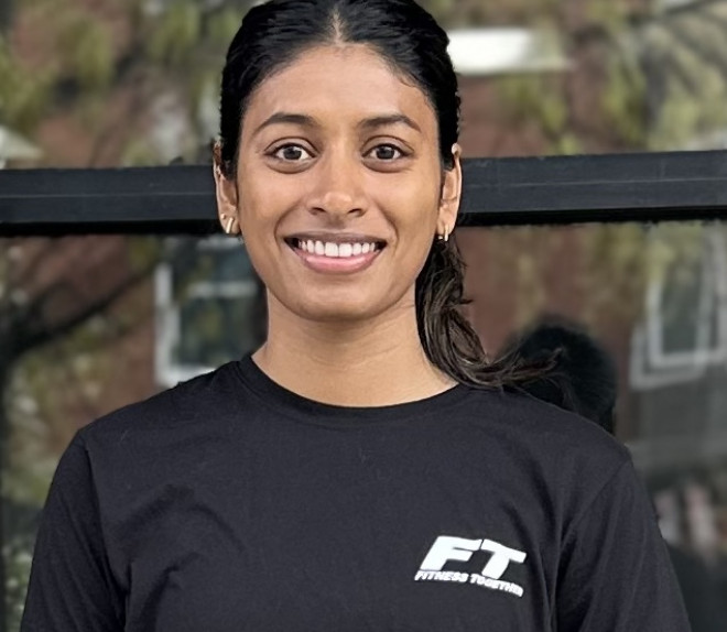 Sushma’s fitness journey began with a commitment to improving her own health and building confidence through strength and resilience. With over five years of experience training diverse clients in both India and the United States, she brings a well-rounded, global perspective to her coaching. Sushma believes fitness extends far beyond completing a workout—it’s about moving efficiently, building confidence, and embracing a sustainable, healthy lifestyle. She is dedicated to delivering safe, effective, and engaging training sessions tailored to each client’s unique goals. Her approach emphasizes proper form and technique as the foundation for building strength, enhancing performance, and preventing injury. By creating smart, achievable programs, she empowers clients to make lasting behavioral changes and cultivate lifelong healthy habits. Outside of training, Sushma enjoys experimenting with nutritious recipes, exploring new hiking trails, and taking scenic drives. A passionate foodie and “pawrent” to a playful labradoodle named Hazel, she embraces balance both inside and outside the gym.